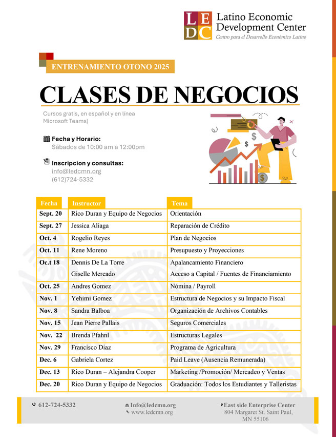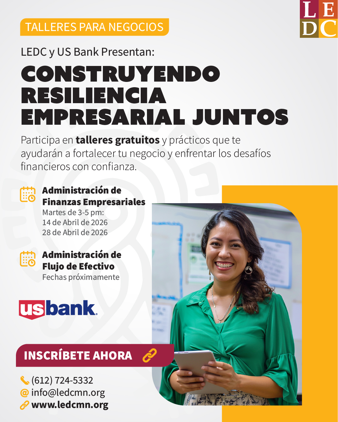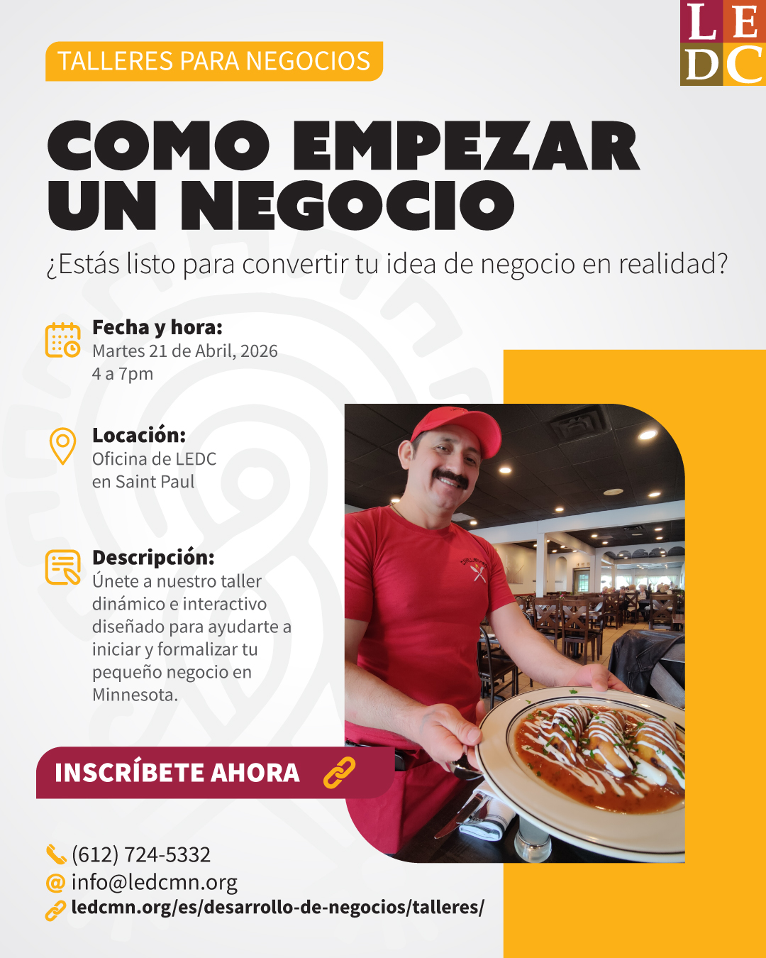 Únete a nuestro taller dinámico e interactivo diseñado para ayudarte a iniciar y formalizer tu pequeño negocio en Minnesota.